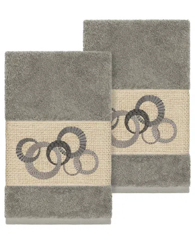 Turkish Cotton Annabelle 2pc Embellished Hand Towel Set In Grey
