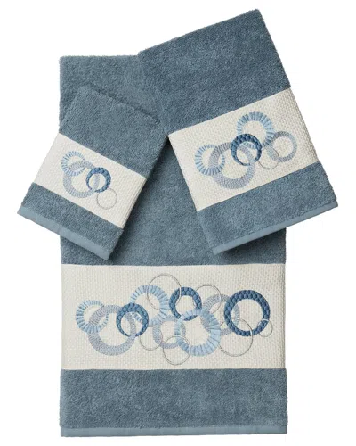 Turkish Cotton Annabelle 3pc Embellished Towel Set In Teal