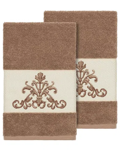 Turkish Cotton Scarlet 2pc Embellished Hand Towel Set In Beige