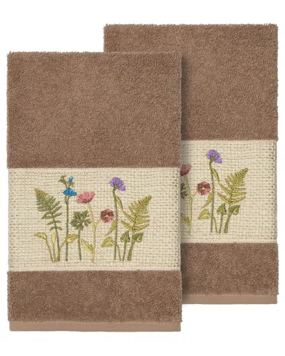 Turkish Cotton Serenity 2pc Embellished Hand Towel Set In Beige