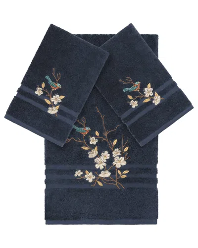 Turkish Cotton Spring Time 3pc Embellished Bath & Hand Towel Set In Blue