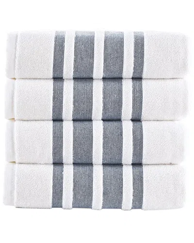 Contrast Border 4pc Hand Towels In Navy
