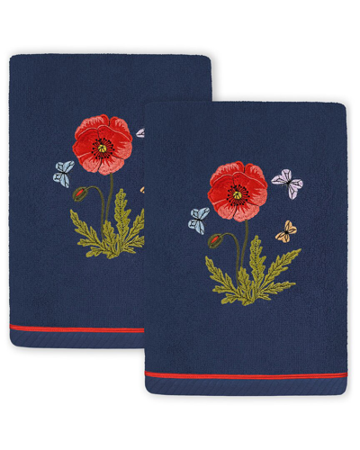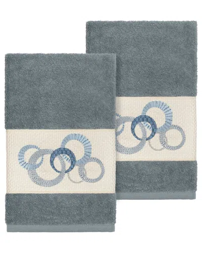 Zoe Turkish Cotton 2pc Embellished Hand Towel Set In Blue