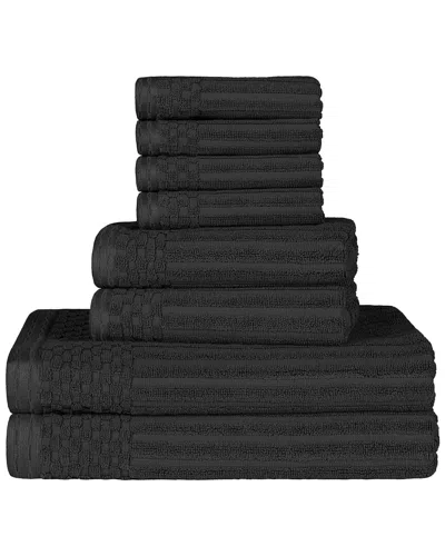 Cotton Highly Absorbent 8pc Solid And Checkered Border Towel Set In Black