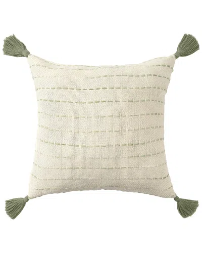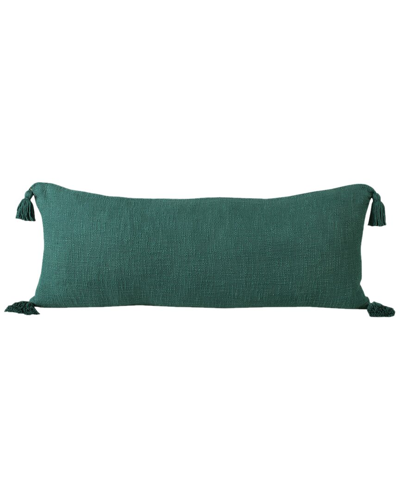 Woven Everyday Solid Green Cotton Lumbar Decorative Pillow
