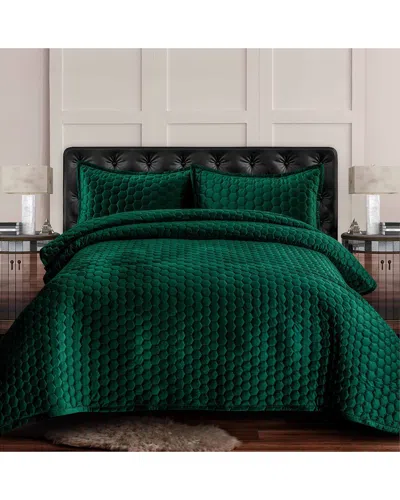 Lugano Velvet Oversized Quilt Set In Green
