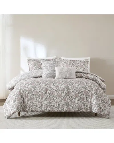 Home 200 Thread Count Cotton Percale Jardin De Rose Duvet Set In White