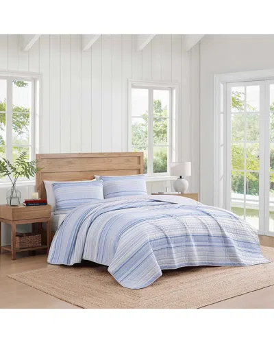 136 Thread Count Bold Stripe Textured Cotton Printed Quilt Set In Blue