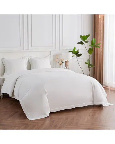 Home 600 Thread Count Framed Embroidery Sateen Cotton Duvet Set In White