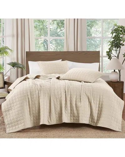 Matte Cotton Velvet Channel Stitch Quilt Set In Neutral