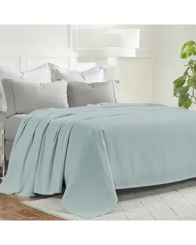 Milan Cotton Textured Striped Lightweight Woven Blanket In Blue