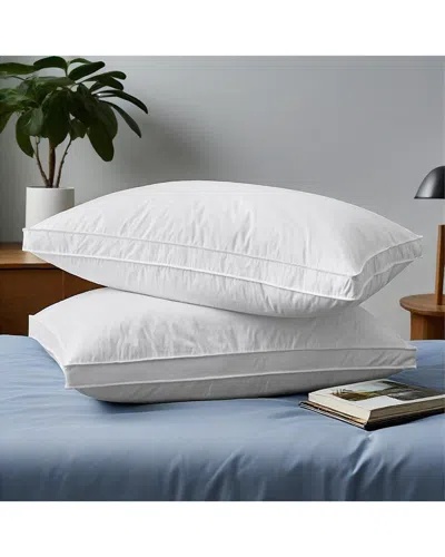 233 Thread Count Set Of 2 Gusseted Cotton Feather Down Bed Pillows In White