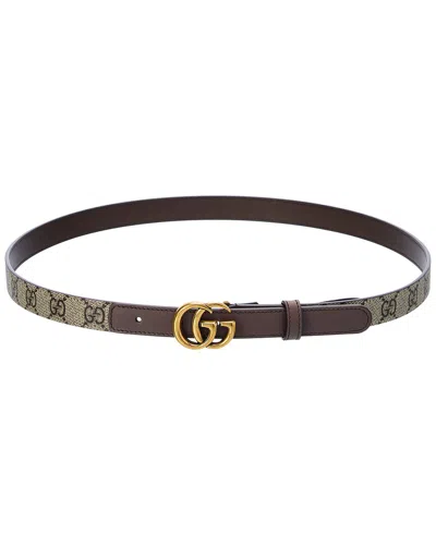 Double G Thin Gg Supreme Canvas & Leather Belt In Brown