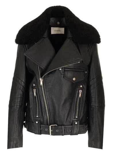 Leather Biker Jacket In Black