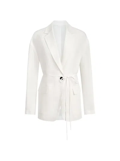 Viscose And Linen Fluid Twill Blazer With Monili In White