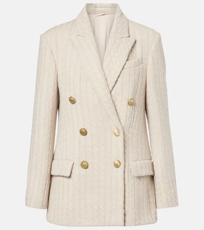 Double-breasted Structured Denim Blazer With Peak Lapel In White