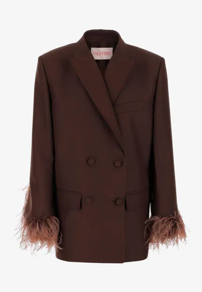 Women Brown Tropical Luxury Wool Blazer With Monili