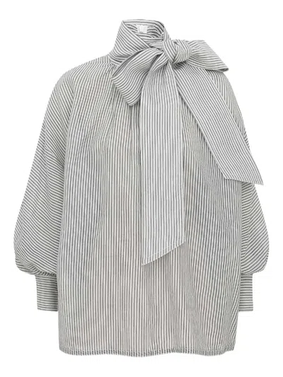 Pussy-bow Striped Cotton And Silk-blend Blouse In Multi