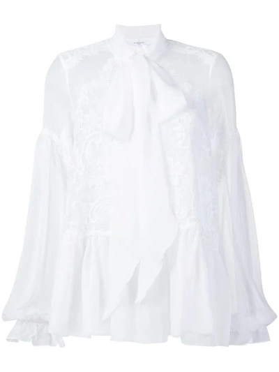 Lace-trimmed Silk Crepe De Chine Blouse In Neutral