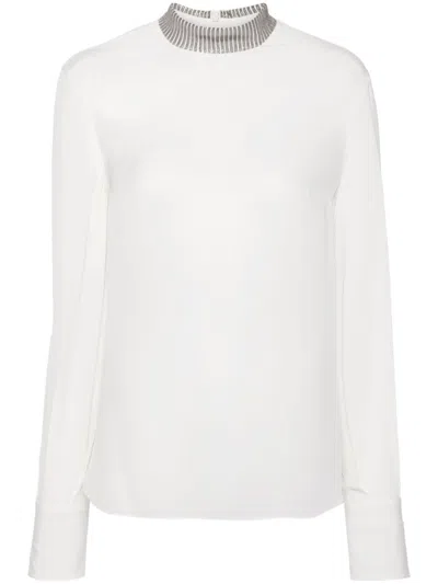 Silk Crepe De Chine Blouse With Neck Jewel In White