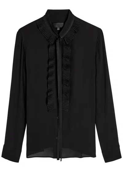 Bertille Tie-detailed Pleated Silk Crepe De Chine Blouse In Black