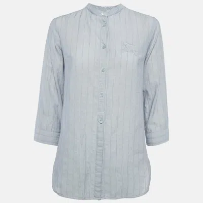 Pre-owned Blue Stripe Cotton Logo Plaque Detail Blouse S