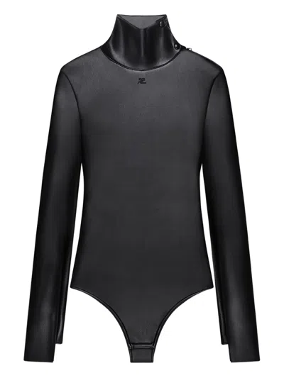 Transparent Bodysuit With High Neck And Long Sleeves In Black
