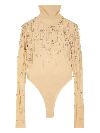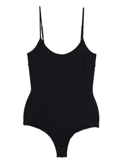 Black Wraparound Bodysuit With Chain Embellishment On The Front In Viscose Blend Woman