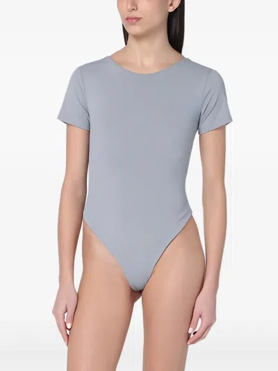Grey Nylon Blend Short Sleeves Bodysuit In Gray