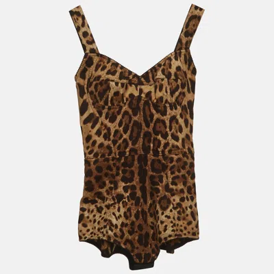 Pre-owned Brown Leopard Print Silk Blend Bodysuit Top Xs
