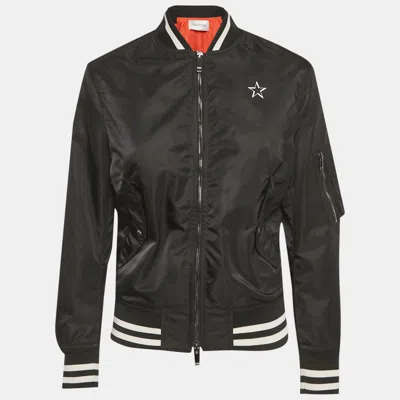 Pre-owned Black Logo Print Nylon Bomber Jacket S