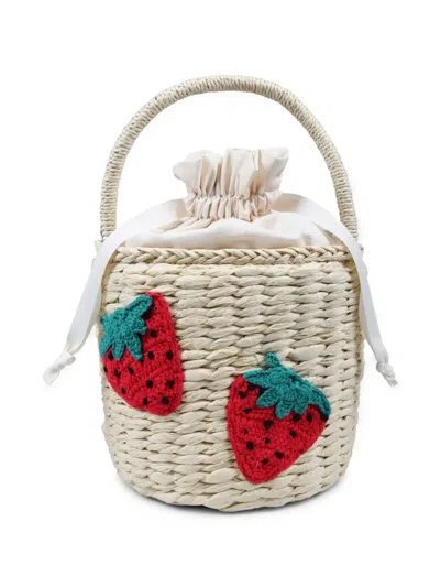 Kids' Embroidered Straw Bucket Bag In 中性色