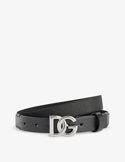 Kids' Logo-buckle Leather Belt In Black