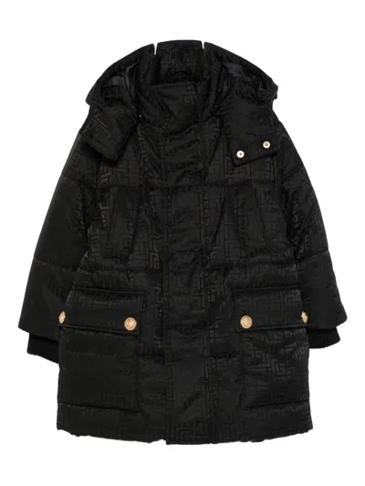 Kids' Faux Fur Trim Nylon Puffer Coat In Animal Print