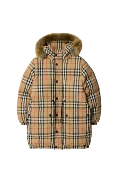 Kids' Childrens Reversible Check Gabardine Car Coat In Archive Beige