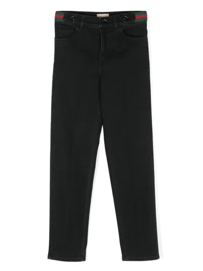 Kids' Dark Blue/mix Branded Contrast-stitch Denim Jeans 4-12 In Black