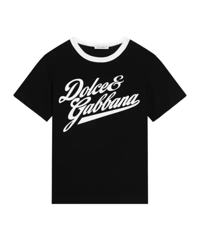 Kids' Short-sleeved Jersey T-shirt With Dolce&gabbana Print In White