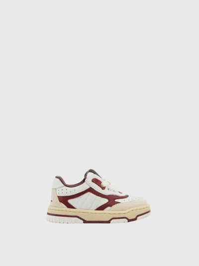 Kids' Re-web Gg-monogram Leather Sneakers In White