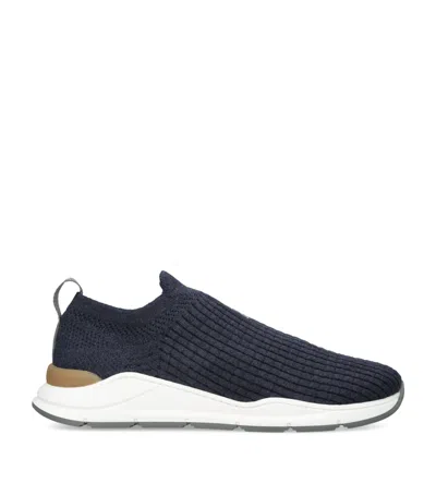 Kids' Cotton Knitted Slip-on Sneakers In Blue