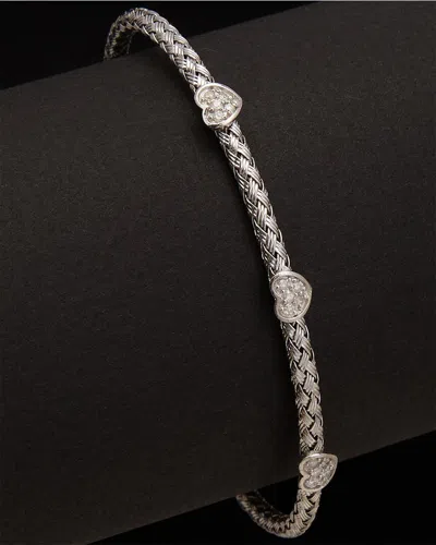 .925 Sterling Silver Diamond Accent Heart And Wave Link Bolo Bracelet (i-j Color In Multi