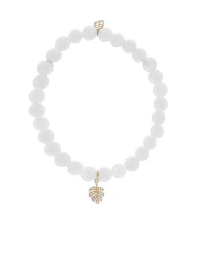 Women's 14k White Gold, Black Rhodium, Chalcedony & Sapphire Beaded Bracelet