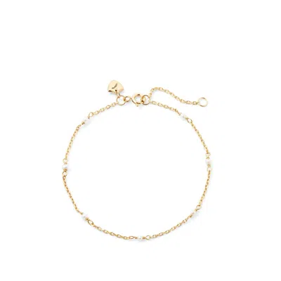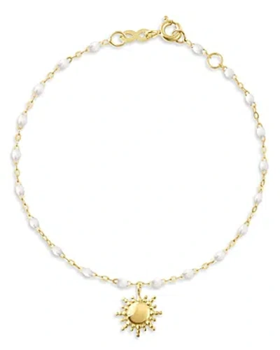 18k Yellow Gold Bead Sun Pendant Bracelet In Gold/white
