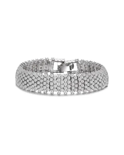 Rhodium Plated Cz Cross Bracelet In Metallic