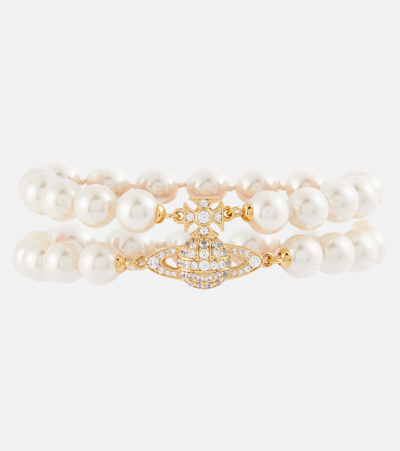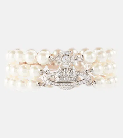 Mens Platinum / Crmrose Pearl Celestia Small Brass Bracelet In Neutral