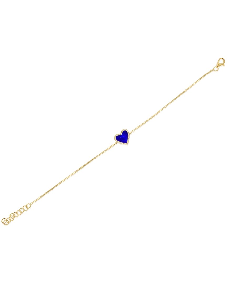 14k 0.70 Ct. Tw. Diamond & Lapis Heart Bracelet In Blue
