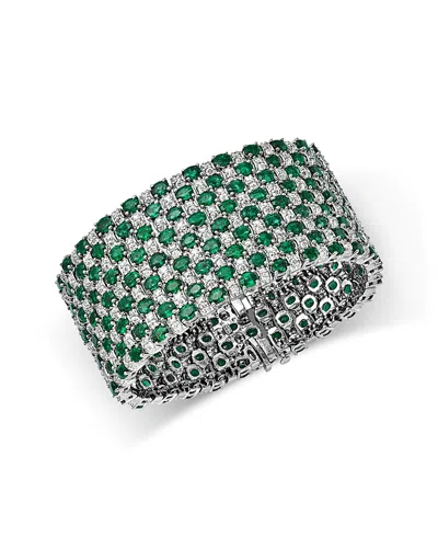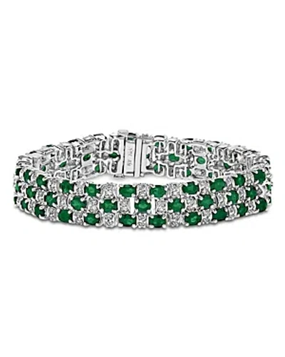 Luxe Collection Emerald & Diamond Multirow Bracelet In 14k White Gold