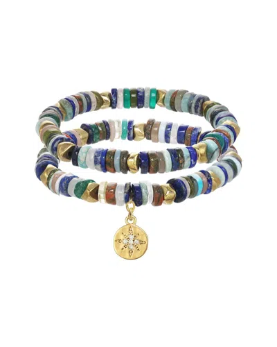 Luxe Collection 18k Plated Cz Candice Beaded Set Of Stretch Bracelets
