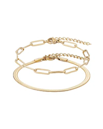 18k Plated Stainless Steel Tarnish-resistant 2-chain Bracelet Set In Brown
