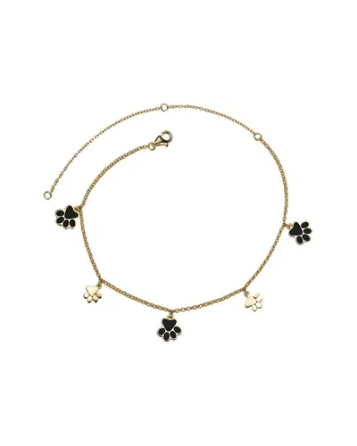 14k Over Silver Cz Puppy Paw Charm Ankle Bracelet
