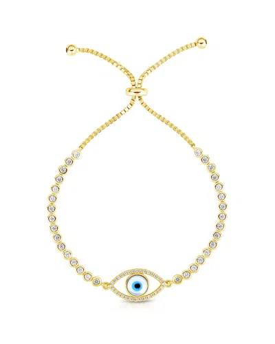 14k Over Silver Cz Adjustable Evil Eye Tennis Bracelet